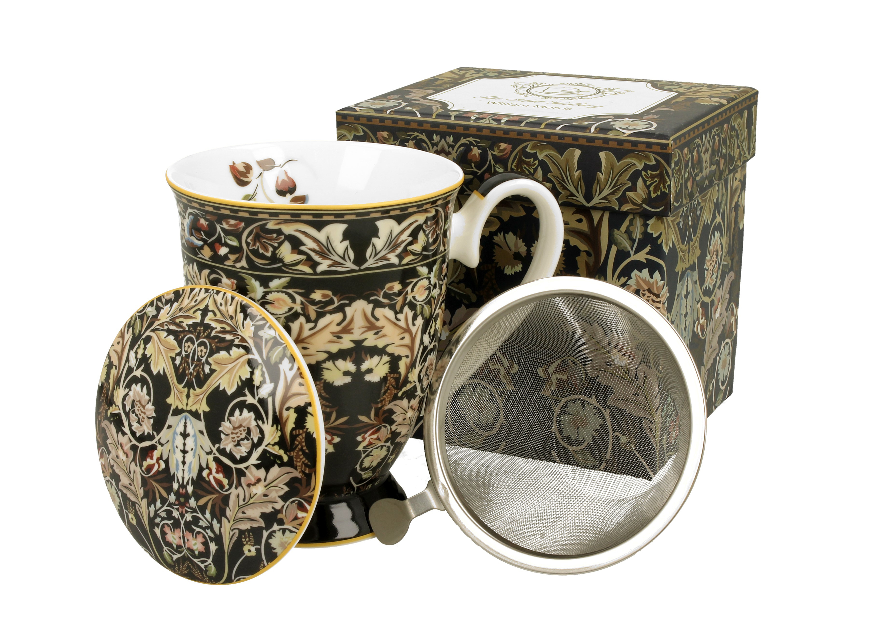DUO-5902693922049 Porculan šalica 300 ml. s poklopcem i cjedilom za čaj ACANTHUS LEAVES