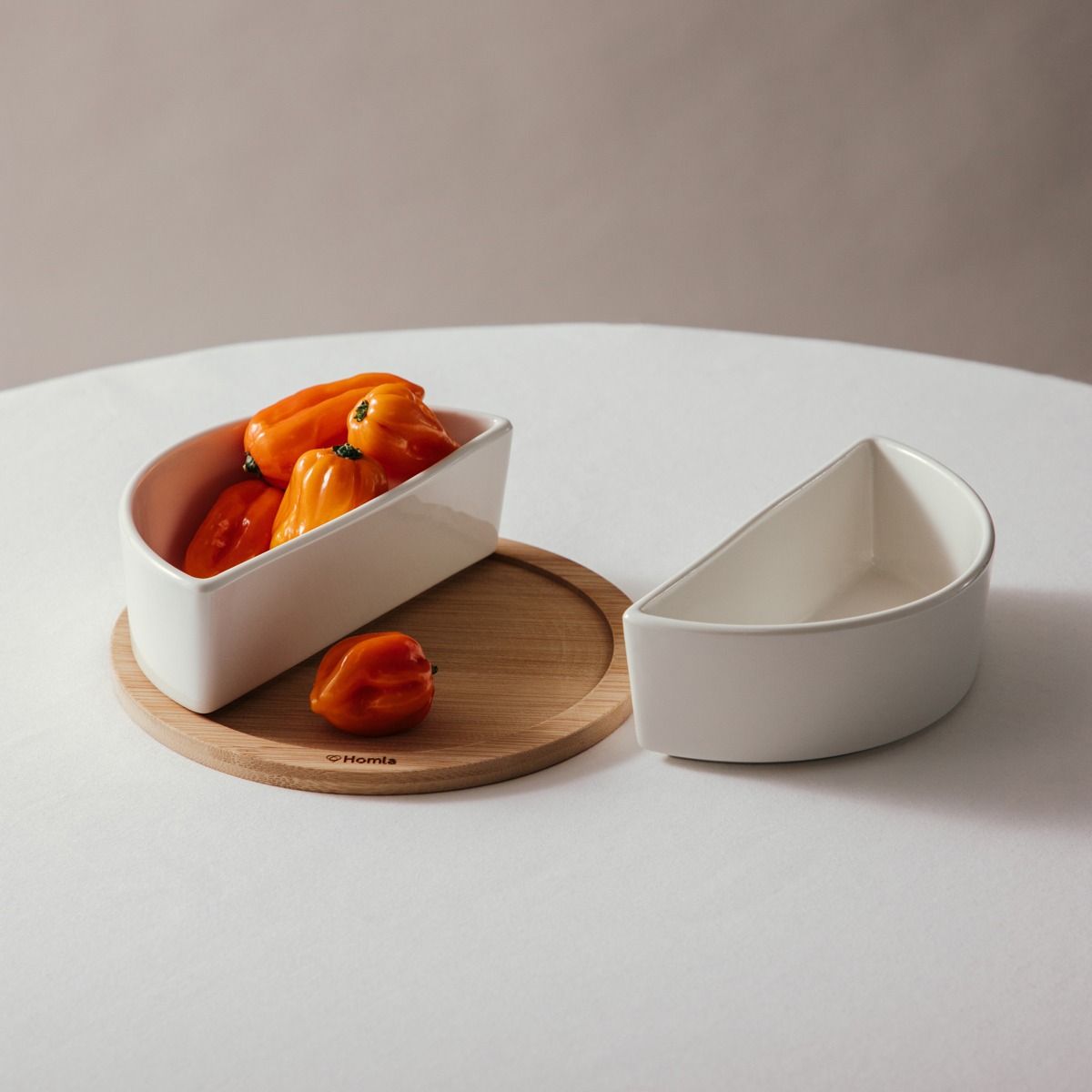HOMLA-229333 FINCAN 2 keramičke zdjelice na podlošku od bambusa 28 x 26,5 cm