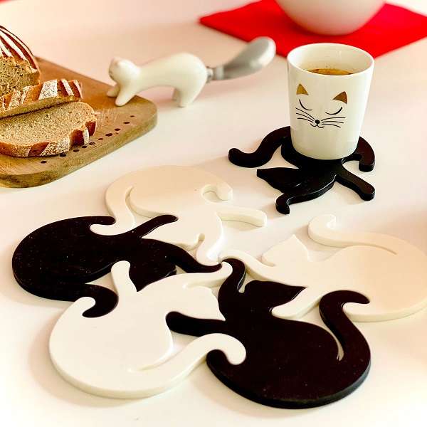 PYL-37937 BK-WH – ENTRECHATS silikonski podmetač za vruće/podmetači za čaše, 9.5 x 11 x 5 cm, crno-bijeli